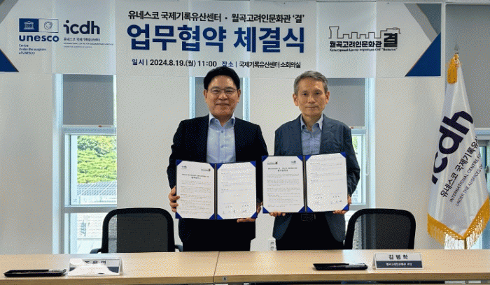 ÃæÃ»ºÏµµ ûÁֽÿ¡ ÀÖ´Â ±¹Á¦±â·ÏÀ¯»ê¼¾ÅÍ¿¡¼ ÁøÇàÇÑ Çù¾à½ÄÀº ´ëÇѹα¹ À¯ÀÏ °í·ÁÀÎ ¿ª»ç À¯¹°Àü½Ã°üÀÎ ¿ù°î°í·ÁÀι®È°üÀÌ ¼ÒÀåÇÑ °í·ÁÀÎ ¿ª»ç À¯¹°¿¡ ´ëÇØ ±¹³»¿Ü ¿¬±¸ÀÚµéÀÇ ³ôÀº Æò°¡¸¦ ¹ÙÅÁÀ¸·Î À¯³×½ºÄÚ ¼¼°è±â·ÏÀ¯»ê µîÀ縦 ÃßÁøÇÏÀÚ´Â ¼¾ÅÍ Ãø Á¦¾ÈÀ¸·Î ÀÌ·ïÁ³´Ù.