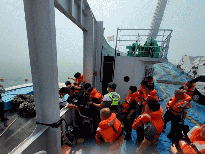 ¿ÏµµÇذæÀº ½Å°í Á¢¼ö Áï½Ã ½Â¼±¿ø Àü¿ø ±¸¸íÁ¶³¢ Âø¿ë ¹× ºñ»óÅ»Ãâ Áغñ¸¦ Áö½ÃÇßÀ¸¸ç °æºñÇÔÁ¤, ÆÄÃâ¼Ò ¿¬¾È±¸Á¶Á¤, ±¸Á¶´ë, ¹Î°£Çؾ籸Á¶´ë¸¦ ±ÞÆÄÇß´Ù. ÇöÀå¿¡ µµÂøÇÑ °æºñÇÔÁ¤Àº Ȥ½Ã³ª ¹ß»ýÇÒ ¼ö ÀÖ´Â 2Â÷»ç°í¸¦ ´ëºñÇÏ¿© ÁÖº¯ ÇØ¿ª ¾ÈÀü°ü¸®¸¦ ½Ç½ÃÇÔ°ú µ¿½Ã¿¡ °æºñÇÔÁ¤ ¹× ¹Î°£Çؾ籸Á¶¼±À» ÀÌ¿ëÇÏ¿© ¿©°´¼± AÈ£¿¡ ž½ÂÇØÀÖ´ø ½Â°´ 50¸íÀ» ¶¥³¡Ç×À¸·Î ¾ÈÀüÇÏ°Ô À̼ÛÇß´Ù.