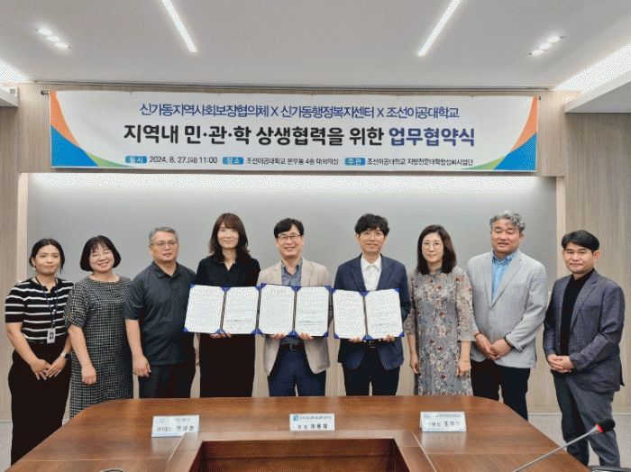 ½Å°¡µ¿Àº 27ÀÏ Á¶¼±À̰ø´ëÇб³¿¡¼ Çù¾à½ÄÀ» °®°í Á¶¼±À̰ø´ëÇб³(ÃÑÀå Á¶¼ø°è), ½Å°¡µ¿ Áö¿ª»çȸº¸ÀåÇùÀÇü(À§¿øÀå Á¶¹«¿µ, ÀÌÇÏ Áö»çÇù)¿Í ÁֹΠº¹ÁöÁõÁøÀ» À§ÇÑ »óÈ£Çù·ÂÀ» ´ÙÁüÇÏ´Â ¾÷¹«Çù¾àÀ» ü°áÇß´Ù.