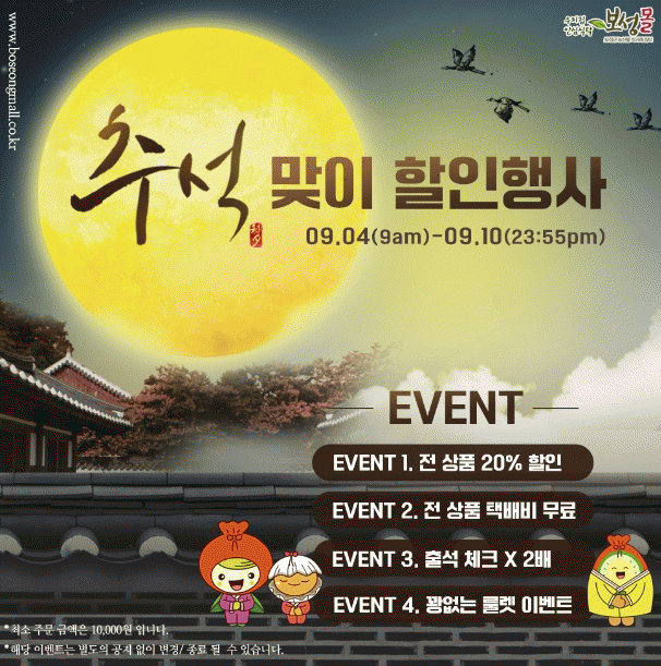 À̹ø Ưº° ÇÒÀÎÇà»ç´Â ¡®º¸¼º¸ô¡¯À» ÀÌ¿ëÇÏ´Â ¸ðµç °í°´À» ´ë»óÀ¸·Î Àü »óǰ 20% ÇÒÀÎ, Àü»óǰ ¹«·á¹è¼Û(¸¸ ¿ø ÀÌ»ó ±¸¸Å ½Ã), ·ê·¿ À̺¥Æ®(2õ ºÎÅÍ 10¸¸ Æ÷ÀÎÆ® Àû¸³), Ãâ¼® üũ Àû¸³±Ý 2¹è À̺¥Æ®(±âÁ¸ 100¿ø) µî °©Áø³âÀ» ¸Â¾Æ °ªÁø ÇýÅÃÀ» ÁÖ´Â À̺¥Æ®°¡ ÁغñµÅ ÀÖ´Ù.