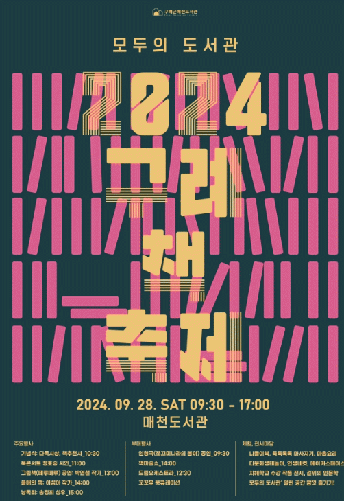 ÃàÁ¦ ´çÀÏ 9½Ã 30ºÐ ÇÞºû¸¶·ç¿¡¼ ¿¸®´Â ÀÎÇü±Ø °ø¿¬À» ½ÃÀÛÀ¸·Î 2024 ¼®Á¤½Ã¹®ÇлóÀ» ¼ö»óÇÑ Á¤È£½Â ½ÃÀÎÀÇ ºÏÄܼƮ(½Ã°¡ ÀÖ´Â À̾߱â), Ã¥ Ãßõ ¹× ´Ùµ¶ ½Ã»ó, ±×¸²Ã¥ °ø¿¬(¹Ú¿¬Ã¶ ÀÛ°¡), Ã¥ ¸¶¼ú¼î(ÀÌÀçö), ¿ÃÇØÀÇ Ã¥ °¿¬(À̼º¾Æ ¼Ò¼³°¡). ³¶µ¶±Ø(¾Æ¹öÁöÀÇ ÇØ¹æÀÏÁö_¿øÀÛ) µîÀÌ À̾îÁø´Ù.