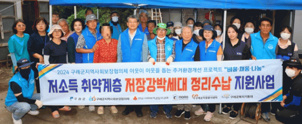 ±¸·Ê±º Áö¿ª»çȸº¸ÀåÇùÀÇü, ¿ì¸®µ¿³× º¹Áö±âµ¿´ë, ÀÚ¿øºÀ»çÀÚ µî 30¿© ¸íÀº °Åµ¿ÀÌ ºÒÆíÇÑ ³ëºÎºÎÀÇ ÁýÀ» ¹æ¹®ÇØ ¿À·§µ¿¾È ½×¿©ÀÖ´ø ¾²·¹±â¸¦ ó¸®Çϰí Á¤¸® ¼ö³³¿¡ ³ª¼¹´Ù.