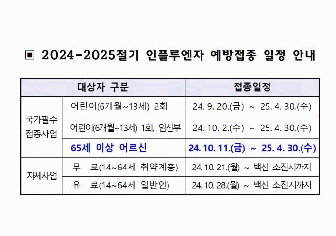 Á¢Á¾ ´ë»óÀÚÀÇ 60% ÀÌ»óÀ» Â÷ÁöÇÏ´Â 65¼¼ ÀÌ»ó ¾î¸£½ÅÀº 10¿ù 11ÀϺÎÅÍ °ü³» 40°³ º¸°Ç±â°ü ¹× 12°³ À§Å¹ÀÇ·á±â°ü¿¡¼ Á¢Á¾ °¡´ÉÇÏ´Ù.