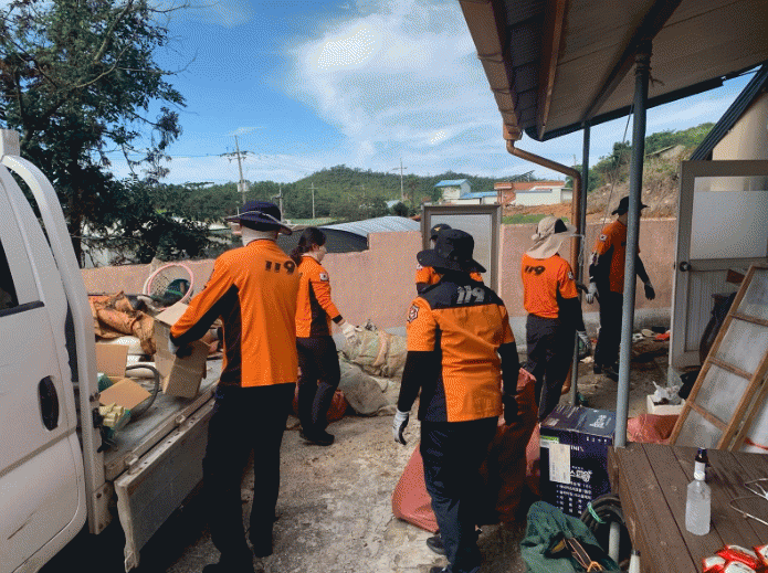 22~24ÀÏ À̾îÁø À̹ø º¹±¸ÀÛ¾÷Àº Àü³² Áö¿ª¿¡¼ ÇÇÇØ°¡ ÄÇ´ø ÇØ³²±ºÀÇ ¹®³»¸é°ú Ȳ»ê¸é¿¡ ÁýÁßÀûÀ¸·Î ÀÌ·ç¾îÁ³´Ù. ÃÑ 30¿© °¡±¸¿¡ ¼Ò¹æ¼ Á÷¿ø°ú ÀÇ¿ë¼Ò¹æ´ë 160¿© ¸íÀÇ ÀηÂÀÌ ÅõÀԵǾî ÁøÇàµÆ´Ù. ±³´ë ±Ù¹«ÀÚµéÀº Åð±Ù ÈÄ Áý°áÇÏ¿© º¹±¸ÀÛ¾÷¿¡ Âü¼®Çß°í, ÀÇ¿ë¼Ò¹æ´ë¿øµéµµ ¿¬ÀÏ ÇÔ²² ÈûÀ» º¸ÅÉ´Ù.