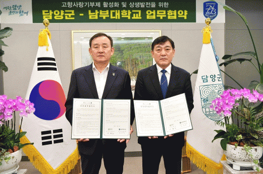 Çù¾à½Ä¿¡´Â Á¶Áعü ÃÑÀåÀ» ºñ·ÔÇÑ °ü°èÀÚµéÀÌ Âü¼®ÇßÀ¸¸ç, ³²ºÎ´ëÇб³´Â ¼Ò¼Ó ±³Á÷¿øÀ» ´ë»óÀ¸·Î °íÇâ»ç¶û±âºÎÁ¦¸¦ È«º¸ÇÏ°í ´ã¾ç±º¿¡¼´Â È«º¸È°µ¿À» Áö¿øÇϰڴٴ ³»¿ëÀÇ Çù¾àÀ» ÁøÇàÇß´Ù.