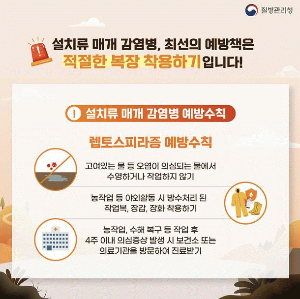 ±º º¸°Ç¼Ò °ü°èÀÚ´Â ¡°°¡À»Ã¶ ¹ß¿¼º ÁúȯÀÌ Áõ°¡Çϰí ÀÖ¾î, ³óÀÛ¾÷À̳ª ¾ß¿ÜȰµ¿ ÈÄ 2ÁÖ À̳»¿¡ °í¿À̳ª ±¸Åä, ¼³»ç Áõ»óÀÌ ÀÖÀ¸¸é Áï½Ã ÀÇ·á±â°üÀ» ¹æ¹®ÇØ ¾ß¿ÜȰµ¿·ÂÀ» ¾Ë¸®°í Áø·á¹ÞÀ» °Í¡±À» ´çºÎÇß´Ù.