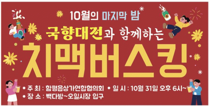 ƯÈ÷ ±¹Çâ´ëÀü ±â°£ Áß 10¿ù 31ÀÏ ¿ÀÈÄ 6½ÃºÎÅÍ ÇÔÆòÀ¾ »ó°¡¿¬ÇÕȸ ÁÖ°üÀ¸·Î ½Ã¿ùÀÇ ¸¶Áö¸· ¹ãÀ» ±â³äÇÏ´Â Ä¡¸Æ ¹ö½ºÅ· Çà»ç°¡ ÇÔÆòÀ¾ »ª´Ù¹æºÎÅÍ ÇÔÆòõÁöÀüÅë½ÃÀå ±¸°£¿¡¼ ¿¸°´Ù.