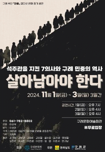 [¹Ìµð¾îÀü³² ÃÖ¶õÈñ ±âÀÚ]±¸·ÊÀÇ ÀÚ¹ßÀûÀÎ ¹Î°£ ±Ø´Ü '¸¶À»'ÀÌ ¿´Ù¼¸ ¹øÂ° Á¤±â °ø¿¬ÀÛÀÎ '»ì¾Æ³²¾Æ¾ß ÇÑ´Ù'(¿øÀÛ À̼º¾Æ ¿¬Ãâ ÀÌ»óÁ÷)¸¦ 11¿ù 1ÀϺÎÅÍ 3ÀϱîÁö »çÈê°£ ±¸·Ê¹®È¿¹¼úȸ°ü¿¡¼ ¿Ã¸°´Ù.