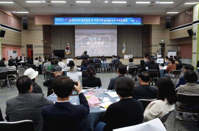 ±¤»ê±¸´Â ±ÝȣŸÀÌ¾î ±¤ÁÖ°øÀå ÀÌÀü¿¡ ´ëÇØ Àü¹®°¡ÀÇ ÀǰßÀ» µè°í Áö¿ªÁֹεé°ú ÇÔ²² Åä·ÐÇÏ´Â ÀåÀ» ¸¶·ÃÇß´Ù.