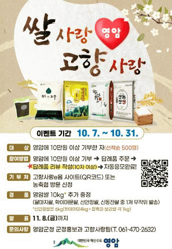 ¿ì½ÂÈñ ¿µ¾Ï±º¼ö´Â ¡°»êÁö ½Ò °¡°ÝÀÌ Ç϶ô, ÀÌ»ó±âÈÄ °í¿Â ÇÇÇØ µîÀ¸·Î Èûµé¾îÇÏ´Â ³ó°¡¸¦ À§ÇØ ¸¶·ÃÇÑ À̺¥Æ®¿¡ Âü¿©ÇØ ÁØ ¸¹Àº ºÐµé¿¡°Ô °¨»çµå¸°´Ù. ¿¬¸»±îÁö ÁÁÀº ³»¿ëÀ¸·Î °íÇâ»ç¶û±âºÎ¸¦ È«º¸Çؼ Áö¿ª¿¡ ²À ÇÊ¿äÇÑ ÀÏ¿¡ ±âºÎ±ÝÀ» ¾²µµ·Ï Çϰڴ١±¶ó°í ¸»Çß´Ù.