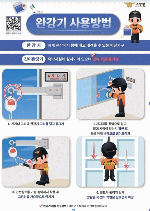 ¿Ï°±â´Â °íÃþ °Ç¹°¿¡¼ ÈÀç°¡ ¹ß»ýÇØ °è´ÜÀ» ÅëÇÑ ÇdzÀÌ ¾î·Á¿î °æ¿ì, °Ç¹° ¿ÜºÎ·Î ¾ÈÀüÇÏ°Ô ´ëÇÇÇÒ ¼ö ÀÖµµ·Ï µ½´Â ºñ»ó¿ë Çdz±â±¸ÀÌ´Ù. ƯÈ÷ ¼÷¹Ú½Ã¼³, °øµ¿ÁÖÅÃ, ¾÷¹«½Ã¼³ µî ÁÖ¿ä °Ç¹°ÀÇ 3Ãþ ÀÌ»ó 10Ãþ ÀÌÇÏ Ãþ¸¶´Ù 1´ë ÀÌ»ó ¼³Ä¡ÇØ¾ß Çϸç, ´ÙÁßÀÌ¿ë¾÷¼ÒÀÇ °æ¿ì 2Ãþ¿¡µµ ¼³Ä¡°¡ ÇÊ¿äÇÏ´Ù. ÀÌ´Â ÇöÇà ¡®ÈÀç¾ÈÀü±âÁØ(NFSC 301)¡¯°ú ¡®´ÙÁßÀÌ¿ë¾÷¼Ò ¾ÈÀü°ü¸®¿¡ °üÇÑ Æ¯º°¹ý¡¯¿¡ µû¸¥ ±ÔÁ¤ÀÌ´Ù.