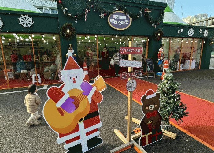ÃàÁ¦ ÀÔ±¸¿¡¼ºÎÅÍ ½ÃÀÛµÈ ¡®¹Ì¸®¹Ì¸® Å©¸®½º¸¶ÄÏ¡¯Àº À¯·´ÀÇ Å©¸®½º¸¶½º ¸¶ÄÏÀ» ¿¬»ó½ÃŰ´Â ÀÌ»öÀûÀÎ Àå½Ä°ú ±¸Á¶¹°·Î ²Ù¸çÁ® ã´Â À̵鿡°Ô Ưº°ÇÑ °æÇèÀ» ¼±»çÇß´Ù. Å©¸®½º¸¶½º °ü·Ã »óǰ°ú °ø¿¹Ç°, ÀÌ»öÀûÀÎ ¿¬¸» ¸Ô°Å¸® µî ´Ù¾çÇÑ ¹°Ç°ÀÌ ÆÇ¸ÅµÆÀ¸¸ç, ÃàÁ¦Àå Àüü°¡ 11¿ù Å©¸®½º¸¶½ºÀÇ µû¶æÇÑ ¿Â±â·Î °¡µæ á´Ù.