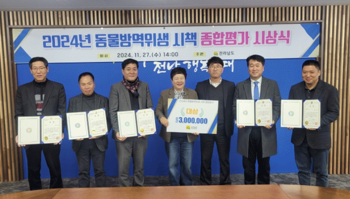 Àü¶ó³²µµ¿¡¼´Â µµ³» 22°³ ½Ã±ºÀ» ´ë»óÀ¸·Î µ¿¹°¹æ¿ª°ú Ãà»ê¹°À§»ý ºÐ¾ß¿¡ ´ëÇÑ ½ÃÃ¥À» Æò°¡ÇØ ¿ì¼ö±â°üÀ» ¼±Á¤ÇÑ´Ù.