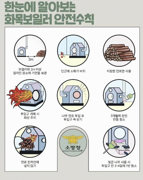 º¸ÀÏ·¯ÀÇ È¿À²¼ºÀ» À¯ÁöÇϰí ÈÀç À§ÇèÀ» ÁÙÀ̱â À§ÇØ 3°³¿ù¸¶´Ù ¿¬ÅëÀ» û¼ÒÇϰí, Á¥Àº ³ª¹«¸¦ »ç¿ëÇÏ´Â °æ¿ì¿¡´Â ÅõÀÔ±¸¿Í ¿¬ÅëÀ» 3~4°³¿ù¿¡ ÇÑ ¹ø¾¿ Á¡°Ë ¹× û¼ÒÇØ¾ß ÇÑ´Ù. ÀÌ·¯ÇÑ Á¤±âÀûÀÎ °ü¸®°¡ ÈÀç ¿¹¹æÀÇ ÇÙ½ÉÀÌ´Ù.