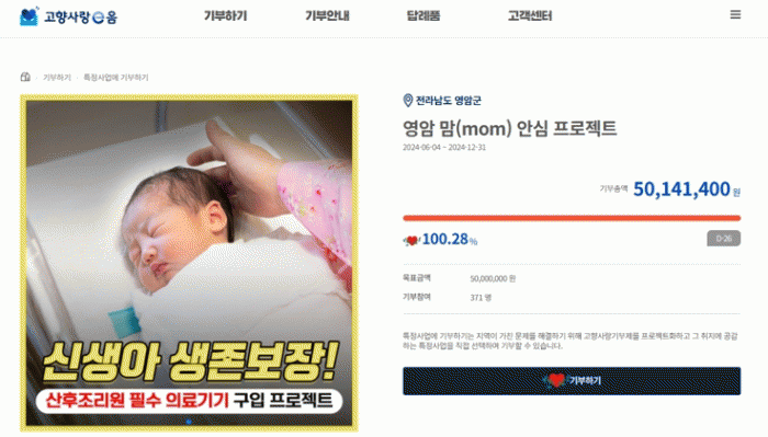 ¿µ¾Ï±ºÀº 20³â ¸¸¿¡ °³¼³µÈ ¡®°íÇâ»ç¶û ¼Ò¾ÆÃ»¼Ò³â°ú¡¯ÀÇ ³»³â ¿î¿µºñ¸¦ ¸ð±ÝÇÏ´Â ÁöÁ¤±âºÎ¸¦ ÇöÀç ÁøÇà ÁßÀÌ´Ù. ¿µ¾Ï ¸¾(mom) ¾È½É ÇÁ·ÎÁ§Æ®ÀÇ ½ÃÁð2 ¸ð±ÝÀÎ °ø°ø»êÈÄÁ¶¸®¿ø °ÇÃàºñ ÁöÁ¤±âºÎµµ Á¶¸¸°£ ÁøÇàÇÑ´Ù´Â °èȹÀÌ´Ù.