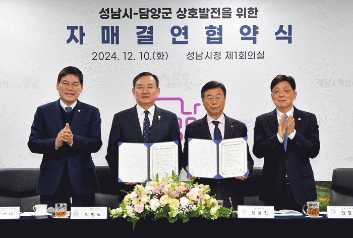 ½Å»óÁø ¼º³²½ÃÀåÀº ¡°½º¸¶Æ® Çõ½Å µµ½Ã ¼º³²½Ã¿Í °ü±¤ÈÞ¾ç µµ½Ã ´ã¾ç±ºÀÇ ÀڸŰῬ ü°áÀÌ ¼·ÎÀÇ °Á¡À» ±Ø´ëÈÇØ »óÈ£ ¹ßÀüÀÇ ¼º°ú·Î À̾îÁö±æ ¹Ù¶õ´Ù¡±¶ó°í ¸»Çß´Ù.