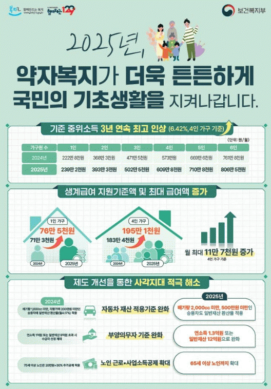 ±âÃÊ»ýȰº¸ÀåÁ¦µµ¿¡¼ °¡±¸ÀÇ ¼Òµæ ÀÎÁ¤¾×ÀÌ ±âÁØ(2025³â 1ÀÎ ±âÁØ »ý°è±Þ¿© 76¸¸ 5,444¿ø, ÀÇ·á±Þ¿© 95¸¸ 6,805¿ø, Áְű޿© 114¸¸ 8,166¿ø, ±³À°±Þ¿© 119¸¸ 6,007¿ø) ÀÌÇÏÀÏ °æ¿ì ¼ö±ÞÀÚ·Î ¼±Á¤µÉ ¼ö ÀÖ´Ù.