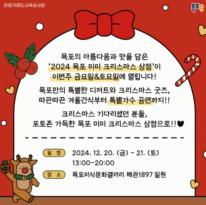 Áö³ÇØ¿¡ ÀÌ¾î µÎ ¹øÂ°·Î °³ÃֵǴ À̹ø Çà»ç´Â ¾Æ¸§´ä°í ¸ÀÀÖ´Â µµ½Ã ¸ñÆ÷¸¸ÀÇ °¨¼ºÀ» ´ãÀº ¸Ô°Å¸®¿Í ±ÂÁî(ÆÒ »óǰ)°¡ ÀÖ´Â Çø®¸¶ÄÏ(º·è½ÃÀå)¿¡ Å©¸®½º¸¶½º ºÐÀ§±â¸¦ ´õÇØ ¸ñÆ÷¸¸ÀÇ Æ¯»öÀÖ´Â °æÇèÀ» ¼±º¸ÀÏ °èȹÀÌ´Ù.