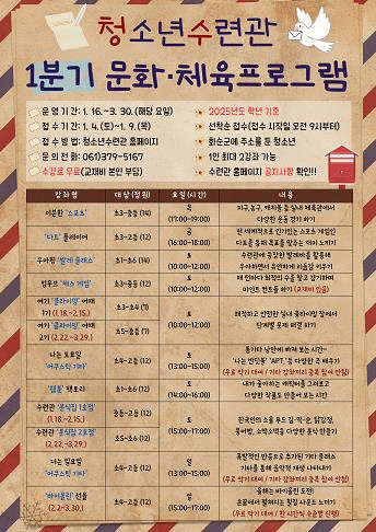 °¢ ºÐ¾ßÀÇ Àü¹®°¡µéÀÌ ÇÔ²²ÇÏ´Â °Á·Π¡ãÀ̺ìÇÑ ¡®½ºÆ÷Ã÷¡¯ ¡ã¡®´ÙÆ®¡¯ Ç÷¹ÀÌ¾î ¡ã¿ì¾ÆÇÎ ¡®¹ß·¹ Ŭ·¡½º¡¯ ¡ãÅ·¹«ºê ¡®Ã¼½º °ÔÀÓ¡¯ ¡ã¿©±â ¡®Å¬¶óÀ̹֡¯ ¾î¶§ ¡ã³ª´Â Åä¿äÀÏ ¡®¾îÄí½ºÆ½ ±âŸ¡¯ ¡ã¡®À¥Å÷¡¯ ÆÑÅ丮 ¡ã¼ö·Ã°ü ¡®ºÐ½ÄÁý¡¯ ¡ã³Ê´Â ÀÏ¿äÀÏ ¡®¾îÄí½ºÆ½ ±âŸ ¡ã¡®¹ÙÀ̿ø°¡¯ ¼±À²·Î 2025³â 1¿ù 16ÀϺÎÅÍ 3¿ù 30ÀϱîÁö ¸ÅÁÖ ÇØ´ç ¿äÀÏ¿¡ ÁøÇàµÉ ¿¹Á¤ÀÌ´Ù.