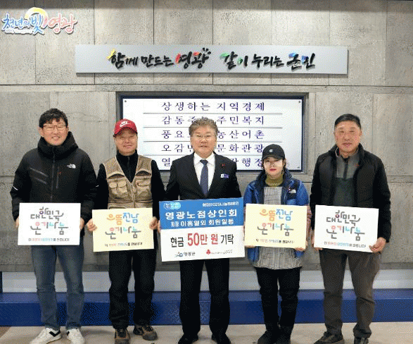 ¿µ±¤³ëÁ¡»óÀÎȸ´Â ¿µ±¤ Å͹̳Π±Ùó¸¦ Áß½ÉÀ¸·Î ³ëÁ¡À» ¿î¿µÇÏ´Â »óÀεéÀÇ ¸ðÀÓÀ¸·Î ȸ¿øµé °£ÀÇ Á¤º¸±³·ù ¹× ±ÇÀͽÅÀåÀ» À§ÇØ °á¼ºµÇ¾úÀ¸¸ç, À̹ø¿¡ ±âŹÇÑ ¼º±ÝÀº Áö¿ªÀÇ ¾î·Á¿î ÀÌ¿ô¿¡°Ô ÀÛÀ¸³ª¸¶ º¸ÅÆÀÌ µÇ°íÀÚ Çϴ ȸ¿øµéÀÇ µû¶æÇÑ ¸¶À½À» ¸ð¾Æ ¸¶·ÃÇÑ °ÍÀÌ´Ù.