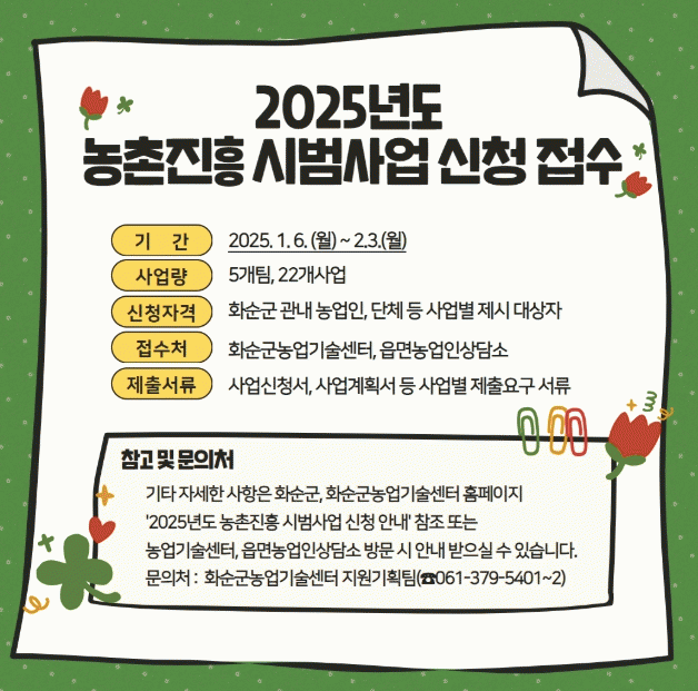 ȼø±º¿¡ °ÅÁÖÇÏ´Â ³ó¾÷ÀÎ ¶Ç´Â ³ó¾÷ °ü·Ã ´Üü´Â ´©±¸³ª ½ÅûÀÌ °¡´ÉÇϸç, »ç¾÷º° ½Åû ¿ä°ÇÀ» °®Ãß¾î ½Åû ±â°£ ³»(2025³â 1¿ù 6ÀÏ ºÎÅÍ 2025³â 2¿ù 3ÀÏ) °ü·Ã ¼·ù¸¦ °®Ãá ÈÄ, ³ó¾÷±â¼ú¼¾ÅÍ¿Í À¾¡¤¸é³ó¾÷Àλó´ã¼Ò¿¡ ¹æ¹®¡¤½ÅûÇÒ ¼ö ÀÖ´Ù.