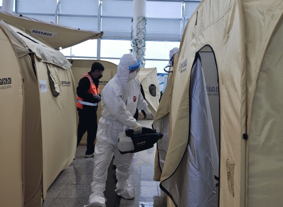 ±ºÀº °øÇ×°ú ºÐÇâ¼Ò °÷°÷¿¡ ¸¶½ºÅ©¿Í ¼Õ¼Òµ¶Á¦¸¦ ¹èÄ¡Çß°í, Á¶¹®°´ µ¿¼±À» ÀÏ¿øÈÇÏ¿© ¹ÐÁýÀ» ÃÖ¼ÒÈÇϰí Á¤±â ¼Òµ¶ µî °¨¿°º´ ¿¹¹æÀ» À§ÇÑ Ã¼°èÀûÀÎ Á¶Ä¡¸¦ Çϰí ÀÖ´Ù.