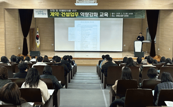 À̹ø ±³À°¿¡¼´Â °ø¹«¿ø ½Ç¹«ÀÚ°¡ Á÷Á¢ °»ç¸¦ ¸Ã¾Æ °ø°ø °è¾àÀÇ ÇÕ¹ý¼º, Åõ¸í¼ºÀ» Á¦°íÇßÀ¸¸ç, »ç¾÷¼Ò³ª À¾¸éÀÇ Á¦1°ü¼ µî °è¾à ¹× °Ç¼³ ¾÷¹« ´ã´çÀÚ¿Í °¢ ºÎ¼ ȸ°è ´ã´çÀÚ¸¦ ´ë»óÀ¸·Î û·Å ½ÇõÀ» À§ÇÑ ¾÷¹« ´É·Â Çâ»ó ±³À°À» ÁøÇàÇß´Ù.