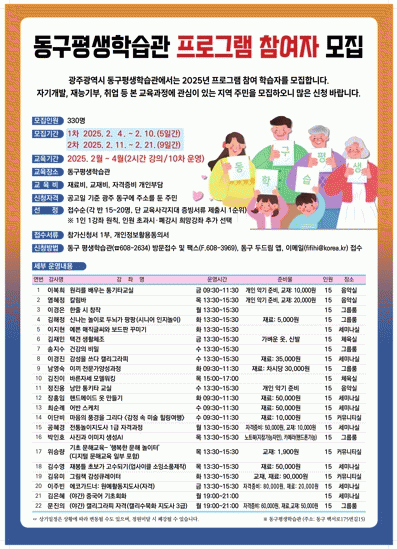 Âü¿©¸¦ ¿øÇÏ´Â ÁÖ¹ÎÀº ¿À´Â 10ÀϱîÁö Æò»ýÇнÀ°ü¿¡ ¹æ¹®¡¤Á¢¼öÇϰųª ¸ð¹ÙÀÏ ¾Û ¡®µ¿±¸ µÎµå¸²¡¯À» ÅëÇØ ¿Â¶óÀÎ ½ÅûÇÏ¸é µÈ´Ù. ±âŸ ÀÚ¼¼ÇÑ »çÇ×Àº µ¿±¸ Æò»ýÇнÀ°üÀ¸·Î ¹®ÀÇÇÏ¸é µÈ´Ù.