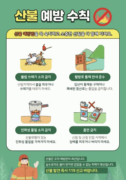 ÀåÈï¼Ò¹æ¼´Â »êºÒ ¿¹¹æÀ» À§ÇØ ´ÙÀ½°ú °°Àº ÁÖ¿ä ¼öÄ¢À» Áöų °ÍÀ» ´çºÎÇß´Ù.