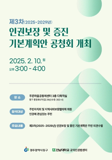 ÀÓÅà µ¿±¸Ã»ÀåÀº ¡°ÁÖ¹ÎÀÇ À뱂 ÀǽÄÀ» Çâ»óÇϰí ÀαÇÀÌ Æø³Ð°Ô º¸ÀåµÉ ¼ö ÀÖµµ·Ï °øÃ»È¸¿¡ ¸¹Àº °ü½ÉÀ» ¹Ù¶õ´Ù¡±¸é¼ ¡°À̹ø °øÃ»È¸¸¦ ÅëÇØ ¼ö·ÅµÈ ÀǰßÀ» ¹ÙÅÁÀ¸·Î ¡®±¤ÁÖ µ¿±¸ Á¦3Â÷ ÀαǺ¸Àå ¹× ÁõÁø ±âº»°èȹ¡¯À» ´õ¿í ¼¼¹ÐÇÏ°Ô º¸¿ÏÇϰí, Áö¿ªÁֹΠ¸ðµÎ°¡ Á¸Áß¹Þ´Â ÀÎ±Ç Ä£ÈÀûÀÎ µ¿±¸¸¦ ¸¸µé±â À§ÇØ ¾Ö¾²°Ú´Ù¡±°í ¸»Çß´Ù.