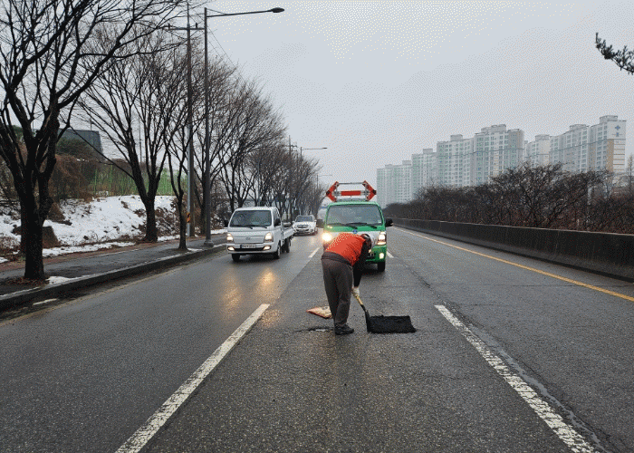 ¼±¸´Â ÇØºù±â¸¦ ¾ÕµÎ°í Æ÷ƮȦ·Î ÀÎÇÑ ¾ÈÀü»ç°í ¹× Â÷·® ÆÄ¼ÕÀ» ÃÖ¼ÒÈÇϱâ À§ÇØ ÀÀ±Þ Á¤ºñ¹ÝÀ» 3°³Á¶ 7¸íÀ¸·Î ±¸¼ºÇß´Ù. ÀÀ±Þ Á¤ºñ¹ÝÀº µµ·Î ³» Æ÷ƮȦ»Ó¸¸ ¾Æ´Ï¶ó Áö¹ÝħÇÏ µî µµ·Î½Ã¼³¹° ÈÑ¼Õ ¿©ºÎ¸¦ È®ÀÎÇϰí Áï½Ã º¸¼öÇÒ ¿¹Á¤ÀÌ´Ù. ¶ÇÇÑ Æ÷ƮȦÀÌ ¹ß»ýÀÌ Àæ°í ¸¹Àº ±¸°£Àº º°µµ ¿¹»êÀ» È®º¸ÇØ ÀçÆ÷ÀåÀ» ½Ç½ÃÇÒ °èȹÀÌ´Ù.