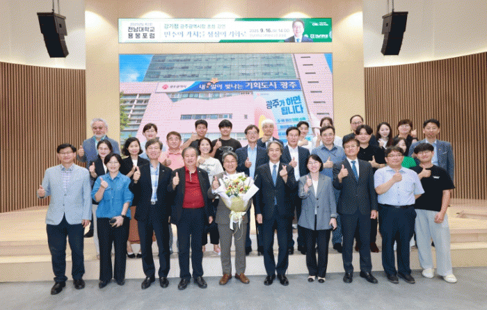 À̹ø Æ÷·³¿¡´Â °±âÁ¤ ±¤ÁÖ½ÃÀåÀÌ ¿¬»ç·Î ³ª¼, ±¤ÁÖÀÇ ¹ÎÁÖÁ¤½ÅÀ» ±â¹ÝÀ¸·Î ÇÑ ¼ºÀå ºñÀü°ú ¹Ì·¡ Àü·«À» Á¦½ÃÇß´Ù. ° ½ÃÀåÀº ±¤ÁÖ°¡ ´ëÇѹα¹ ¿ª»ç ¼Ó¿¡¼ ¼¼ Â÷·ÊÀÇ ¡®°í¸³¡¯À» °Þ¾ú´Ù°í Áø´ÜÇß´Ù. ù ¹øÂ°´Â 1980³â 5¡¤18¹ÎÁÖȿ, µÎ ¹øÂ°´Â 1991³â 3´ç ÇÕ´ç, ¼¼ ¹øÂ°´Â ÇöÀçÀÇ ÀÏÀÚ¸® °í¸³À̶ó°í °Á¶Çß´Ù.