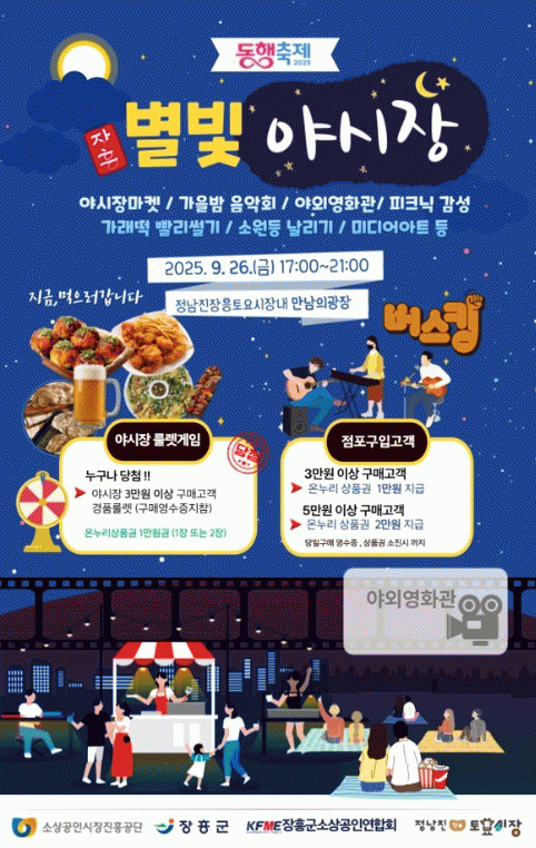¡®º°ºû ¾ß½ÃÀ塯Àº Á¤³²ÁøÀåÈïÅä¿ä½ÃÀå Ȱ¼ºÈ¸¦ ¸ñÇ¥·Î ´Ù¾çÇÑ ¸Ô°Å¸® »Ó¸¸ ¾Æ´Ï¶ó °¡À»¹ã À½¾Çȸ, ¾ß¿Ü¿µÈ°ü,¹ö½ºÅ· °ø¿¬ µî ¹®ÈÇà»ç¿Í ¼Ò¿øµî ³¯¸®±â, ÀüÅë³îÀÌ, ¹Ìµð¾î ¾ÆÆ® µî üÇèÇà»ç°¡ ÁøÇàµÇ¸ç ÀåÈïÀÇ °¡À»¹ãÀ» ³¶¸¸À¸·Î ¹°µéÀÏ ¿¹Á¤ÀÌ´Ù