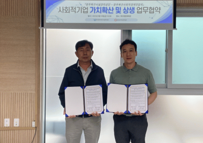 [¹Ìµð¾îÀü³² Á¦°¥´ëÁ¾ ±âÀÚ]±¤Áֽúϱ¸½Ã¼³°ü¸®°ø´ÜÀº ±¤Áֺϱ¸»çȸÀû°æÁ¦¿¬ÇÕȸ¿Í 19ÀÏ ºÏ±¸Á¾ÇÕüÀ°°ü¿¡¼­ ¡®»çȸÀû±â¾÷ °¡Ä¡È®»ê ¹× »ó»ý ¾÷¹«Çù¾à¡¯À» ü°áÇß´Ù.