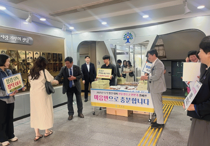 ÀÌ¿Í ÇÔ²², ¸íÀý °ü·Ã ¡°ºÎÁ¤Ã»Å¹ ¹× ±Ýǰ ¼ö¼ö µî¿¡ °üÇÑ ¹ý·ü¡±¿¡ ´ëÇÑ ÄûÁî Ç®ÀÌ¿Í ¡®ºÎÆÐ ¾ø´Â û·Å °î¼º¡¯ ±¸È£ Á¦Ã¢ µîÀÇ È°µ¿µµ ÇÔ²² ÁøÇàµÆ´Ù. ÀÌÈÄ Ä·ÆäÀÎÀº ¡ã °íÀ§°øÁ÷ÀÚÀÇ¡®Ã»Å¹±ÝÁö¹ý¡¯°ü·Ã ¼¾à, ¡ã ¸íÀý û·Å´ÙÁü ¹®±¸ ¸±·¹ÀÌ °Ô½Ã µîÀ¸·Î ÀÌ¾î¼ ÃßÁøµÉ ¿¹Á¤ÀÌ´Ù.