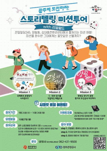 ¡®2025 ±¤Áֹ湮ÀÇ ÇØ¡¯¸¦ ¸Â¾Æ üÇèÇü °ü±¤ ÄÜÅÙÃ÷·Î ¼±º¸ÀÎ À̹ø ¹Ì¼ÇÅõ¾î´Â Âü°¡ÀÚ°¡ ½ÇÁ¦ Àå¼Ò¸¦ À̵¿ÇÏ¸ç ¹Ì¼ÇÀ» ¼öÇàÇϰí ÀÌ¾ß±â ¼Ó ÁÖÀΰøÀÌ µÇ¾î ±¤ÁÖ °ø°£À» Á÷Á¢ üÇèÇÒ ¼ö ÀÖ´Ù.