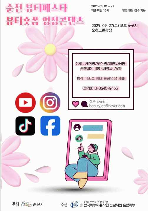 ¡°°³¼º»Õ, ¸ÚÁü»Õ, ¾Æ¸§´Ù¿ò»Õ, ¼øÃµ¹ÌÀÎ 3»Õ!(¸Å·Â°ú °³¼º)¡±À» ÁÖÁ¦·Î ¼ôÆû(60ÃÊ À̳» ªÀº ¿µ»ó)À» ÃÔ¿µÇØ ´©±¸³ª ¿Â¡¤¿ÀÇÁ¶óÀÎÀ¸·Î Âü¿©ÇÒ ¼ö ÀÖÀ¸¸ç, ºäƼ(¾Æ¸§´Ù¿ò)¿¡ ´ëÇØ ÀÚÀ¯·Ó°í âÀÇÀûÀ¸·Î Ç¥ÇöÇÒ ¼ö ÀÖ´Ù.