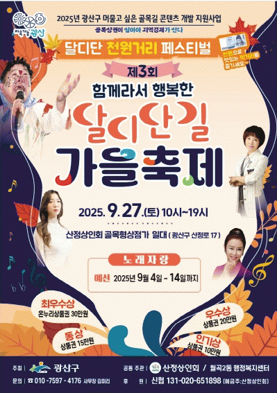 ±¤»ê±¸°¡ Áö¿øÇÏ´Â ¸Ó¹°°í ½ÍÀº °ñ¸ñ±æ ÄÜÅÙÃ÷ °³¹ß¡¤Áö¿ø »ç¾÷ Áß Çϳª·Î ¸¶·ÃµÈ ¿ù°î2µ¿(µ¿Àå ¹®Çý¿¬)°ú ºñ¾Æµ¿(µ¿Àå Àå¿ë¼º)¿¡¼´Â ¡®Á¦3ȸ ÇÔ²²¶ó¼ ÇູÇÑ ´Þµð´Ü±æ °¡À»ÃàÁ¦¡¯¿Í ¡®2025³â 100³âºñ¾Æ õ³â±¤»ê¸·ÅëÃàÁ¦¡¯°¡ ¿¸°´Ù.
