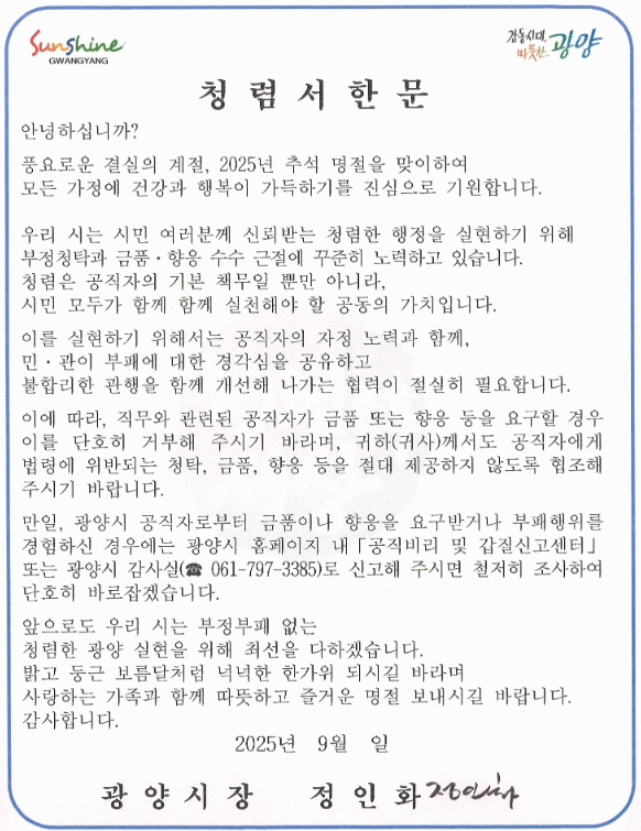 À̹ø û·Å¼Çѹ® ¹ß¼ÛÀº °øÁ÷ÀÚ¿Í ¹Î°£ÀÌ ÇÔ²²Çϴ û·Å»çȸ ±¸ÇöÀÇ ÀÏȯÀ¸·Î, ¸íÀý ±â°£ Áß ¹ß»ýÇÒ ¼ö ÀÖ´Â ±Ýǰ¡¤ÇâÀÀ ¼ö¼ö¿Í ºÎ´çÇÑ ¹Î¿øÃ³¸® ¿ä±¸ µîÀ» »çÀü¿¡ Â÷´ÜÇÏ°í ½Å·Ú¿¡ ±â¹ÝÇÑ Åõ¸íÇÏ°í °øÁ¤ÇÑ ÇàÁ¤¼ºñ½º¸¦ ½ÇÇöÇϱâ À§ÇØ ÃßÁøµÆ´Ù.