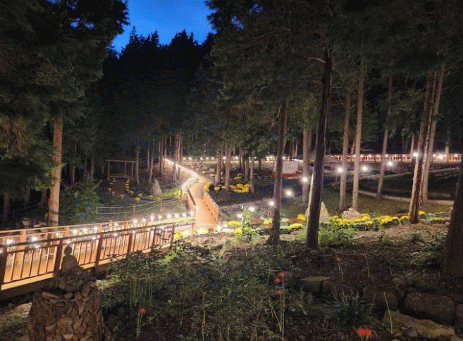 ¿î¸²»ê¸²¿åÀåÀº 9¿ù 27ÀϺÎÅÍ 10¿ù 5ÀϱîÁö 9ÀÏ µ¿¾È ¾ß°£(¿ÀÈÄ 6½ÃºÎÅÍ ¿ÀÈÄ 10½Ã±îÁö)¿¡µµ ¿î¿µÇϸç, ¾ß°£¿¡ ¿î¸²»ê¸²¿åÀåÀ» ¹æ¹®Çϸé ÀºÀºÇÑ Á¶¸íÀ¸·Î ²Ù¸çÁø Æí¹é ½£¿¡¼ ²É¹«¸©À» °¨»óÇÏ¸ç »ê¸²¿åÀ» Áñ±æ ¼ö ÀÖ´Ù.