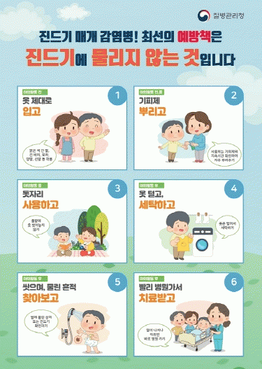 ½Ã °ü°èÀÚ´Â ¡°°¡Àå È¿°úÀûÀÎ ¿¹¹æ ¹æ¹ýÀº Áøµå±â¿¡ ¹°¸®Áö ¾Ê´Â °Í¡±À̶ó¸ç ¡°Á¦ÃÊȰµ¿, ³óÀÛ¾÷ µî ¾ß¿Ü Ȱµ¿ ½Ã ±ä ¿Ê Âø¿ë°ú ±âÇÇÁ¦ »ç¿ë, ±Í°¡ ÈÄ Áï½Ã ¿Ê ¼¼Å¹°ú »þ¿ö µî ±âº» ¿¹¹æ¼öÄ¢À» ²À ÁöÄÑ ´Þ¶ó¡±°í ´çºÎÇß´Ù.