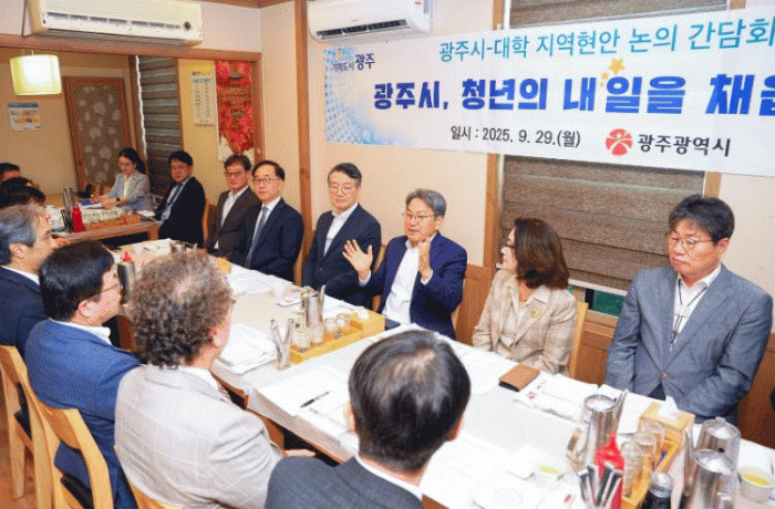 ±¤ÁÖ±¤¿ª½Ã´Â 29ÀÏ ¼±¸ Ä¡Æòµ¿ ÇÑ À½½ÄÁ¡¿¡¼ ±¤ÁÖÁö¿ª 12°³ ´ëÇÐ ÃÑÀåµé°ú ¡®¿ÀÂù °£´ãȸ¡¯¸¦ ¿°í, Áö¿ª ´ëÇÐ ¹ßÀü ¹æÇâ°ú Çù·Â ¹æ¾È¿¡ ´ëÇØ ³íÀÇÇß´Ù.