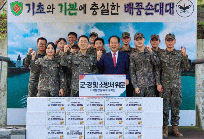 Áøµµ±º ÅëÇÕ¹æÀ§ÇùÀÇȸ´Â Áö¿ª»çȸÀÇ ¾ÈÀü°ú ±¹°¡ ¾Èº¸¸¦ À§ÇØ ÇöÀå¿¡¼ ¶¡ È긮´Â ±ºÀΰú °æÂû, ¼Ò¹æ´ë¿øµé¿¡°Ô °¨»çÀÇ ¸¶À½À» ÀüÇϱâ À§ÇØ ¸Å³â ¼³°ú Ãß¼®¿¡ À§¹® Ȱµ¿À» À̾î¿À°í ÀÖ°í, À̹ø À§¹®¿¡´Â Çѵ·°ú Áøµµ Ư»êǰ ¼¼Æ®¸¦ Àü´ÞÇÏ¸ç µû¶æÇÑ ¸¶À½À» ³ª´³´Ù.