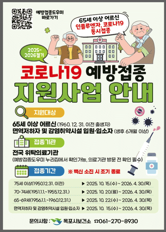 Á¢Á¾ ´ë»óÀº ¡ã65¼¼ ÀÌ»ó ¾î¸£½Å ¡ã»ýÈÄ 6°³¿ù ÀÌ»ó ¸é¿ªÀúÇÏÀÚ ¡ã°¨¿°Ãë¾à½Ã¼³ ÀÔ¿ø¡¤ÀÔ¼ÒÀÚÀ̸ç, ¸ñÆ÷½Ã À§Å¹ ÀÇ·á±â°ü 71°³¼Ò¿¡¼ ¸ð´õ³ª¿Í ÈÀÌÀÚ µî LP.8.1 ¹é½ÅÀ» ¹«·á·Î Á¢Á¾¹ÞÀ» ¼ö ÀÖ´Ù.