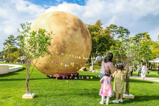 ¼øÃµ¸¸±¹°¡Á¤¿ø È£¼öÁ¤¿ø °ø¿¬Àå¿¡ ¼³Ä¡µÈ ´ëÇü º¸¸§´Þ Á¶Çü¹° ¾Õ¿¡¼ ÇÑ °¡Á·ÀÌ ¼Ò¿ø ÂÊÁö¸¦ ´Þ°í ÀÖ´Ù