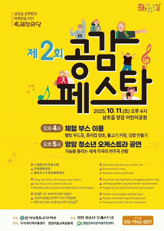 (Àç)¿µ¾Ï¹®È°ü±¤Àç´ÜÀº ¡°À̹ø Çà»ç¸¦ ÅëÇØ ´Ù¹®È »çȸ¿¡ ´ëÇÑ °ø°¨°ú ÀÌÇØ°¡ ±í¾îÁö´Â °è±â°¡ µÇ±æ ¹Ù¶ó¸ç, ¾ÕÀ¸·Îµµ À½¾ÇÀ» ÅëÇØ ´Ù¹®È û¼Ò³âµéÀÌ °Ç°ÇÑ »çȸ ±¸¼º¿øÀ¸·Î ¼ºÀåÇÒ ¼ö ÀÖµµ·Ï Áö¼ÓÀûÀÎ Áö¿ø Ȱµ¿À» À̾°Ú´Ù.¡±°í ¹àÇû´Ù.