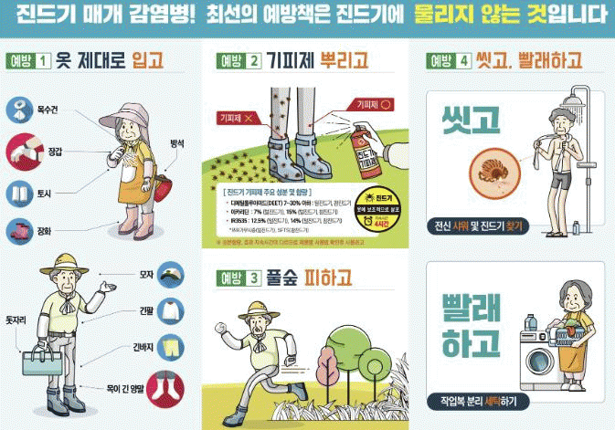 ¿¹¹æÀ» À§Çؼ´Â ³óÀÛ¾÷¡¤»ê³ª¹° äÃ롤ÅÔ¹ç °¡²Ù±â¡¤µî»ê µî ¾ß¿ÜȰµ¿ ½Ã Ç®¹ç¿¡ Á÷Á¢ ¾ÉÁö ¸»°í, ±äÆÈ°ú ±ä¹ÙÁö¸¦ Âø¿ëÇØ ÇǺΠ³ëÃâÀ» ÃÖ¼ÒÈÇØ¾ß ÇÑ´Ù.
