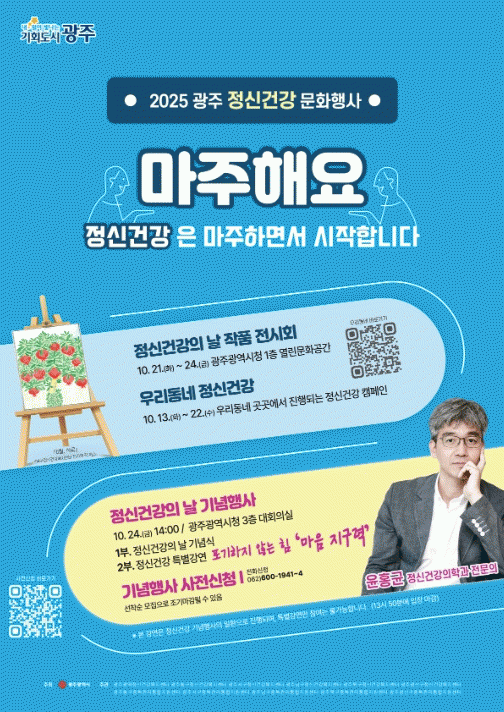 ±¤ÁÖ±¤¿ª½Ã°¡ ÁÖÃÖÇÏ°í ±¤ÁÖ±¤¿ªÁ¤½Å°Ç°º¹Áö¼¾ÅÍ¿Í 5°³ ÀÚÄ¡±¸ Á¤½Å°Ç°º¹Áö¼¾ÅÍ, Áßµ¶°ü¸®ÅëÇÕÁö¿ø¼¾ÅͰ¡ °øµ¿ ÁÖ°üÇØ ¿¸®´Â À̹ø Çà»ç´Â ¡®Á¤½Å°Ç°Àº ¸¶ÁÖÇÏ¸é¼ ½ÃÀÛÇÕ´Ï´Ù¡¯¸¦ ÁÖÁ¦·Î ½Ã¹Î°ú ÇÔ²²ÇÏ´Â ´Ù¾çÇÑ ÇÁ·Î±×·¥À» ¼±º¸ÀδÙ.