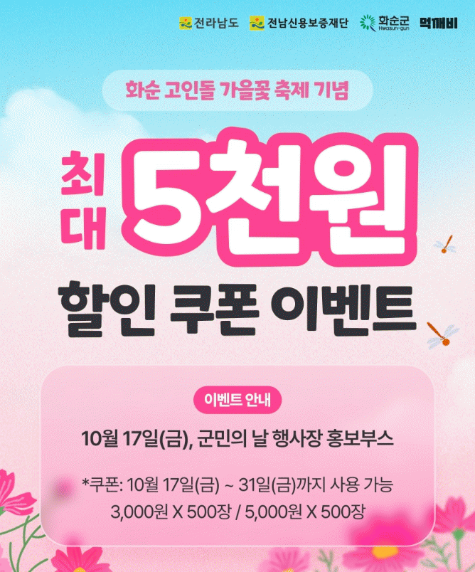 À̳¯ Áö±ÞµÈ ÄíÆùÀº 10¿ù 17ÀϺÎÅÍ 10¿ù 31ÀϱîÁö °ø°ø¹è´Þ¾Û ¡®¸Ô±úºñ¡¯¿¡¼ °áÁ¦ ½Ã Áï½Ã »ç¿ëÇÒ ¼ö ÀÖÀ¸¸ç, ´Ù¸¥ À̺¥Æ®¿Í Áߺ¹ ÇÒÀεµ °¡´ÉÇÏ´Ù.