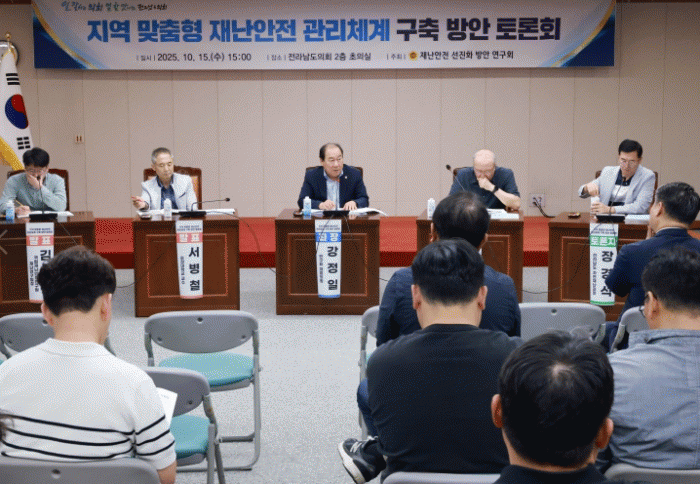 [¹Ìµð¾îÀü³² Á¦°¥´ëÁ¾ ±âÀÚ]Àü¶ó³²µµÀÇȸ ÀÇ¿ø ¿¬±¸´ÜüÀÎ'Àç³­¾ÈÀü ¼±ÁøÈ­ ¹æ¾È ¿¬±¸È¸'´Â Áö³­ 10¿ù 15ÀÏ Àü¶ó³²µµÀÇȸ ÃÊÀǽǿ¡¼­ °­Á¤ÀÏ ´ëÇ¥ÀÇ¿ø(±¤¾ç2) ÁÖÀç·Î ¡®Áö¿ª ¸ÂÃãÇü Àç³­¾ÈÀü °ü¸®Ã¼°è ±¸Ãà ¹æ¾È¡¯¿¡ ´ëÇÑ Åä·Ðȸ¸¦ °³ÃÖÇß´Ù.